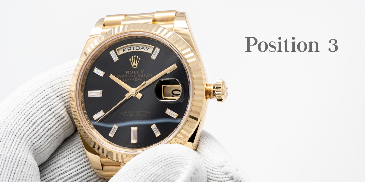 Familiarizing yourself with the location, function, and different positions of the crown is a key aspect of setting the time on your Rolex watch. We might suggest gently testing a few positions to become accustomed to each position.