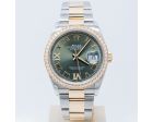 Rolex Datejust 36 126283RBR, Steel & Yellow Gold, Olive Green Roman VI/IX Diamonds Dial, Oyster Bracelet