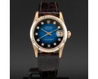 Rolex Datejust 31 68278, Yellow Gold, Aftermarket Blue Vignette Diamond Dial, Leather Strap, Renewed