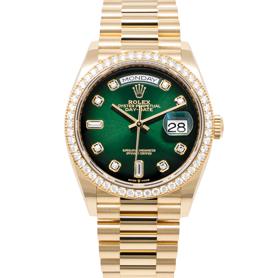 Available in 36, 40, and 41mm (Day-Date II) sizes, the Day-Date was the first self-winding waterproof chronometer to feature a calendar with the full day on the dial. Often referred to as the "President," this model holds a special place in history, famously worn by President Lyndon B. Johnson and symbolizing Rolex's rise in the luxury watch segment. Exclusively crafted in precious metals like gold and platinum, the Day-Date epitomizes the very essence of a flagship dress watch. Our most sought-after references include the 128238, 228238, 118238, and 18238.